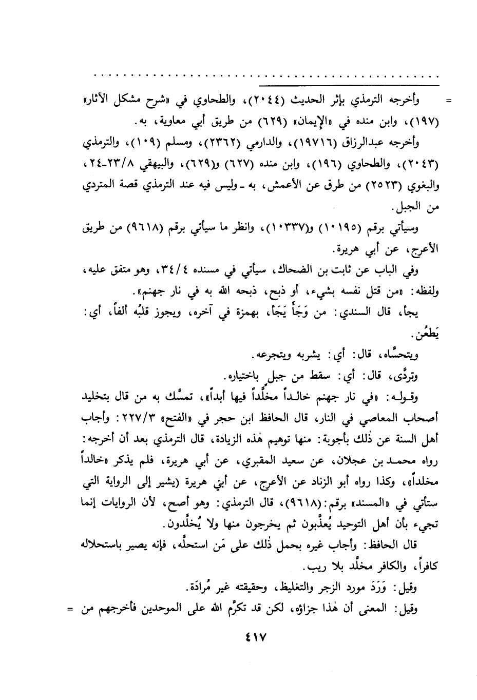 وأخرجه عبد الرزاق (١٩٧١٦) ، والدارمي (٢٣٦٢) ، ومسلم (١٠٩) ، والترمذي (٢٠٤٣) ، والطحاوي (١٩٦) ، وابن منده (٦٢٧) و (٦٢٩) ، والبيهقي ٨/٢٣-٢٤، والبغوي (٢٥٢٣) من طرق عن الأعمش، به - وليس فيه عند الترمذي قصة المتردي من الجبل.