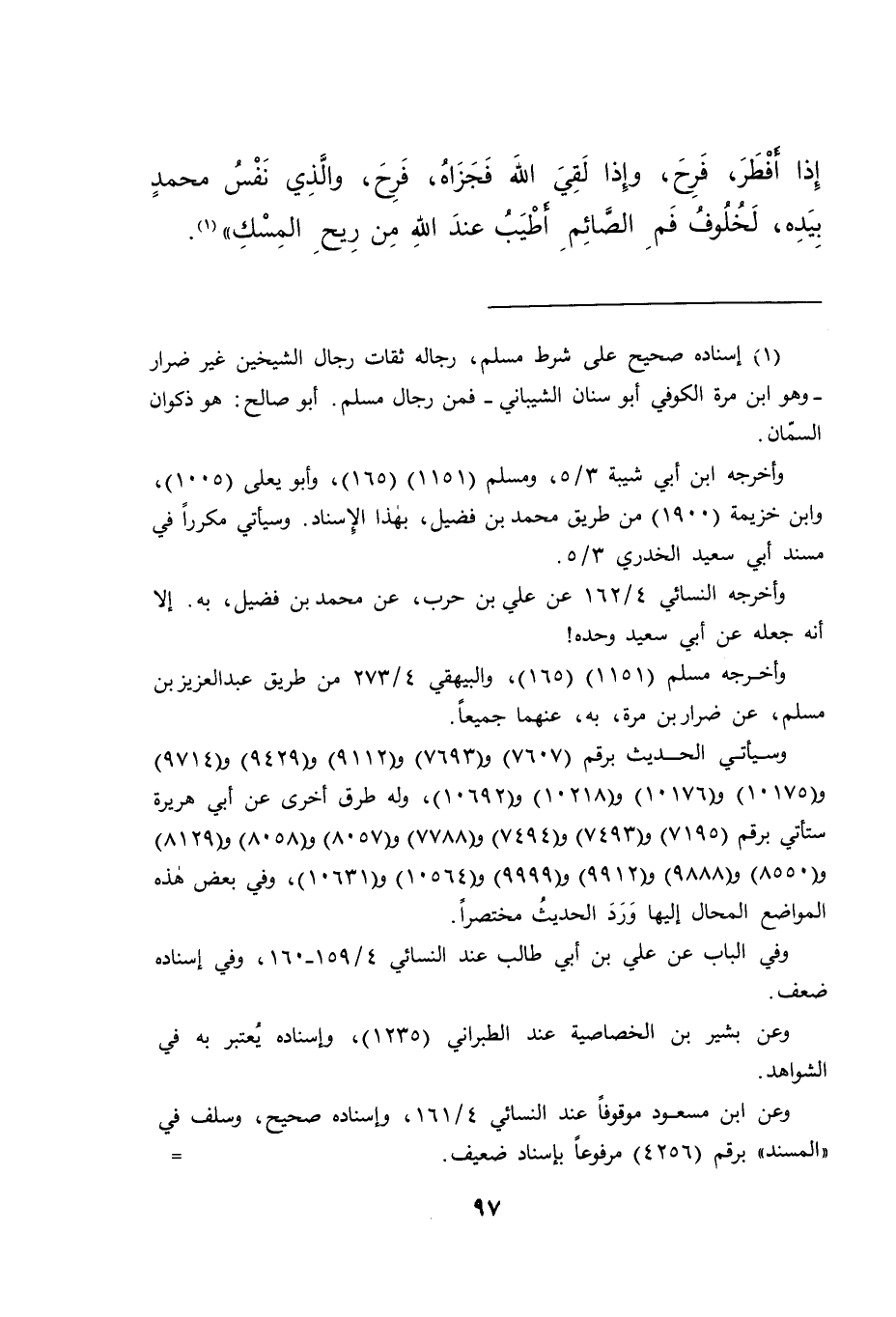 وسيأتي الحديث برقم (٧٦٠٧) و (٧٦٩٣) و (٩١١٢) و (٩٤٢٩) و (٩٧١٤) و (١٠١٧٥) و (١٠١٧٦) و (١٠٢١٨) و (١٠٦٩٢) ، وله طرق أخرى عن أبي هريرة ستأتي برقم (٧١٩٥) و (٧٤٩٣) و (٧٤٩٤) و (٧٧٨٨) و (٨٠٥٧) و (٨٠٥٨) و (٨١٢٩) و (٨٥٥٠) و (٩٨٨٨) و (٩٩١٢) و (٩٩٩٩) و (١٠٥٦٤) و (١٠٦٣١) ، وفى بعض هذه المواضع المحال إليها ورد الحديث مختصراً.