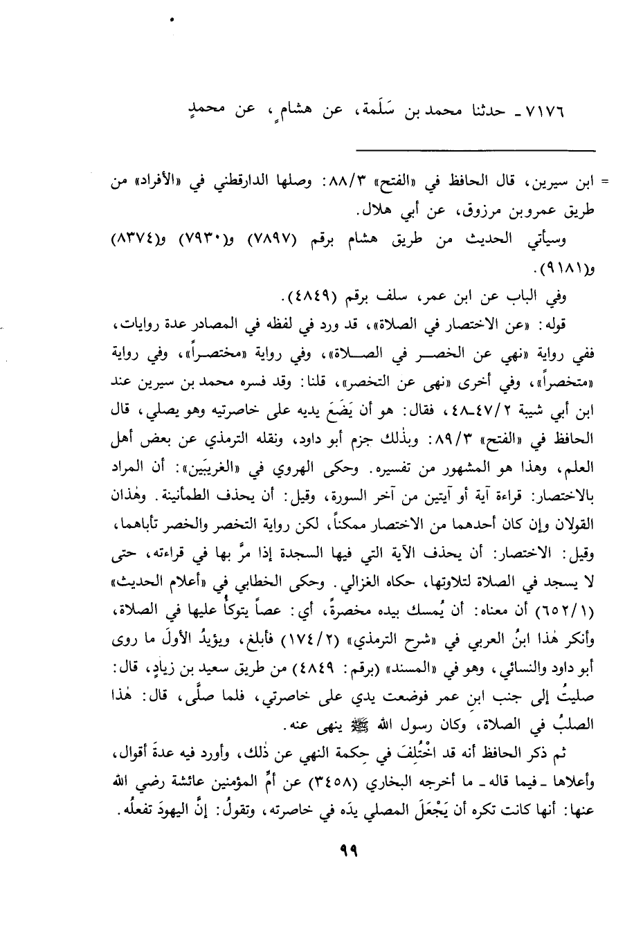 ٧١٧٦ - حَدَّثَنَا مُحَمَّدُ بْنُ سَلَمَةَ، عَنْ هِشَامٍ، عَنْ مُحَمَّدٍ،