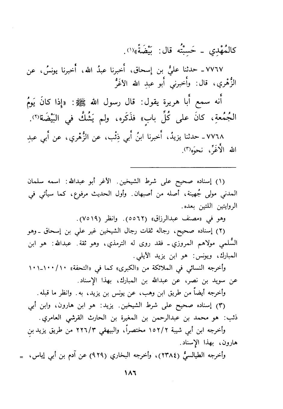 ٧٧٦٨ - حَدَّثَنَا يَزِيدُ، أَخْبَرَنَا ابْنُ أَبِي ذِئْبٍ، عَنِ الزُّهْرِيِّ، عَنْ أَبِي عَبْدِ اللهِ الْأَغَرِّ، نَحْوَهُ (٣)