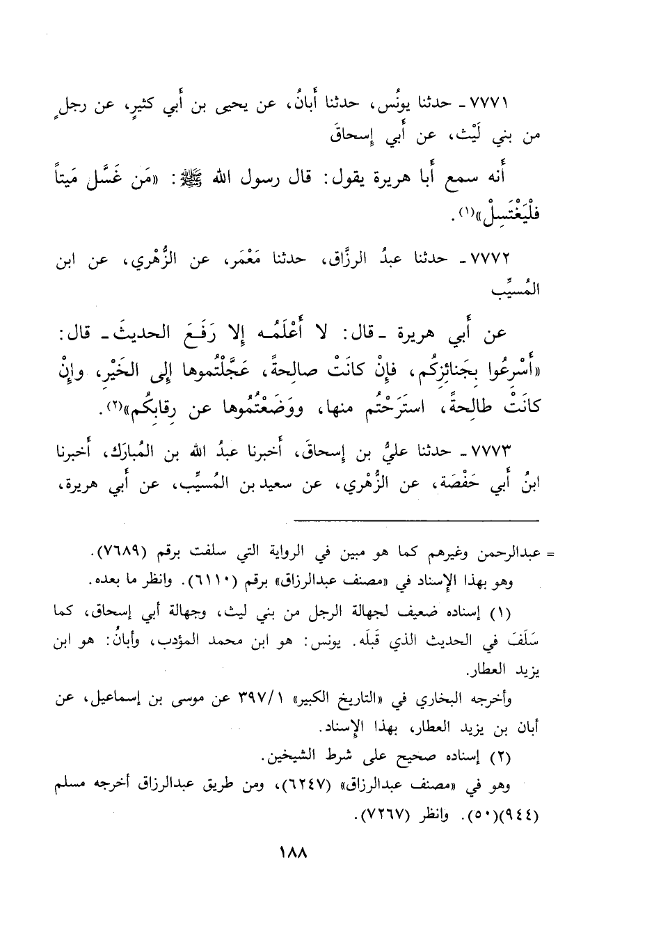 = عبد الرحمن وغيرهم كما هو مبين في الرواية التي سلفت برقم (٧٦٨٩) .