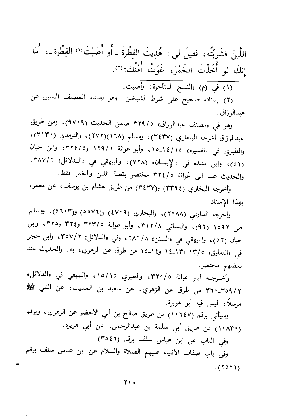 اللَّبَنَ فَشَرِبْتُهُ، فَقِيلَ لِي: هُدِيتَ الْفِطْرَةَ، وَأَصَبْتَ (١) الْفِطْرَةَ، أَمَا إِنَّكَ لَوْ أَخَذْتَ الْخَمْرَ، غَوَتْ أُمَّتُكَ " (٢)