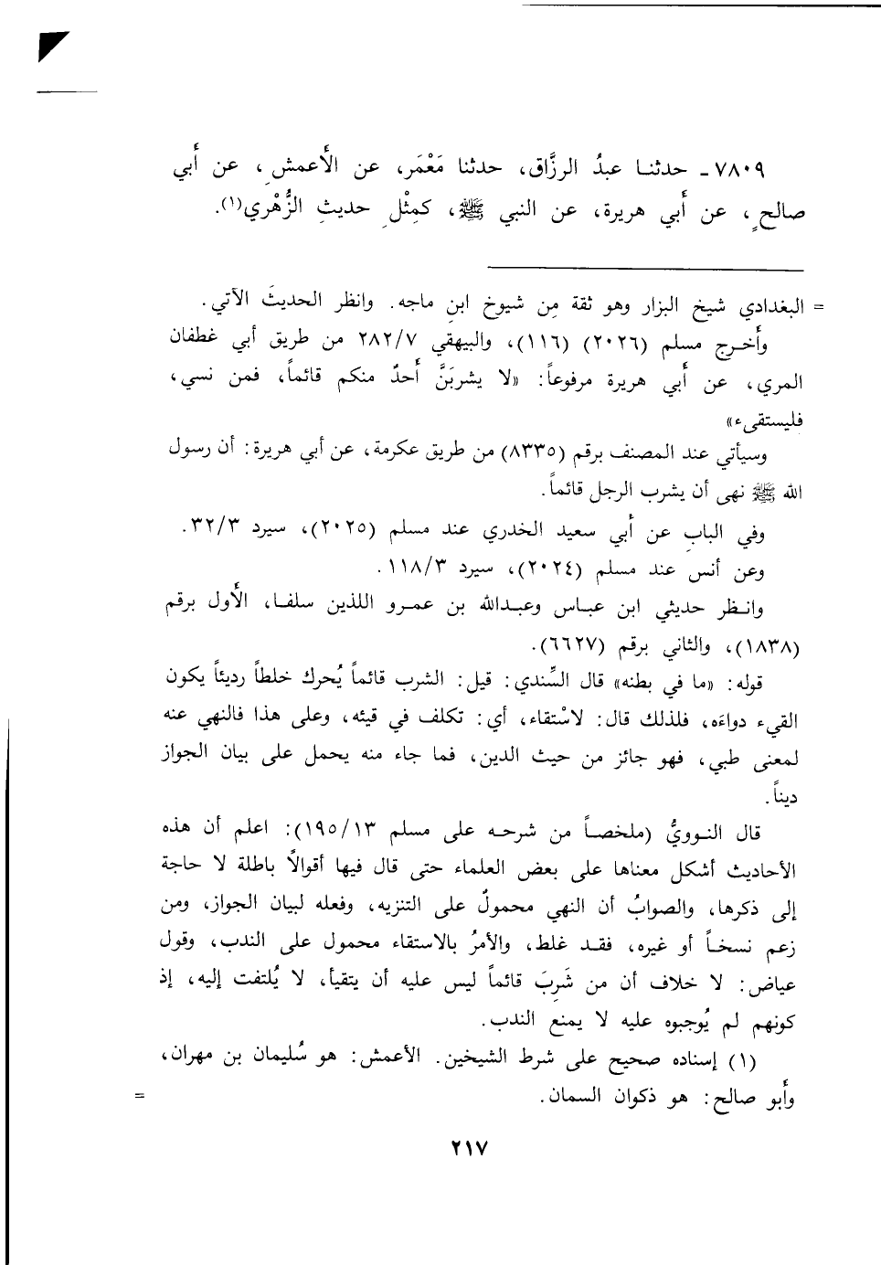 ٧٨٠٩ - حَدَّثَنَا عَبْدُ الرَّزَّاقِ، حَدَّثَنَا مَعْمَرٌ، عَنِ الْأَعْمَشِ، عَنْ أَبِي صَالِحٍ، عَنْ أَبِي هُرَيْرَةَ، عَنِ النَّبِيِّ صَلَّى اللهُ عَلَيْهِ وَسَلَّمَ، كَمِثْلِ حَدِيثِ الزُّهْرِيِّ (١)