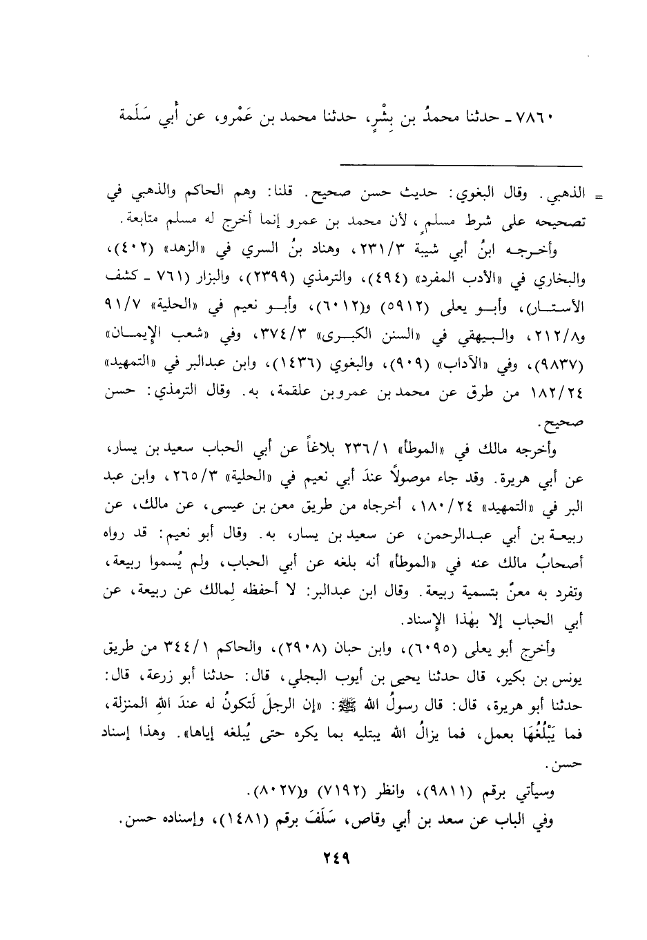 ٧٨٦٠ - حَدَّثَنَا مُحَمَّدُ بْنُ بِشْرٍ، حَدَّثَنَا مُحَمَّدُ بْنُ عَمْرٍو، عَنْ أَبِي سَلَمَةَ،
