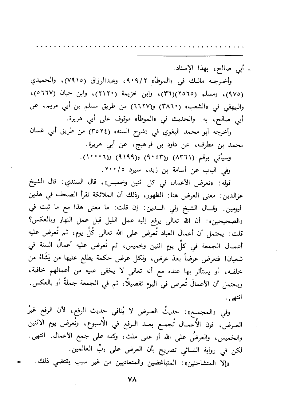 قوله: "تعرض الأعمال في كل اثنين وخميس"، قال السندي: قال الشيخ عزالدين: معنى العرض هنا: الظهور، وذلك أن الملائكة تقرأ الصحف في هذين اليومين. وقال الشيخ ولي الدين: إن قلت: ما معنى هذا مع ما ثبت في "الصحيحين": أن الله تعالى يرفع إليه عمل الليل قبل عمل النهار وبالعكس؟