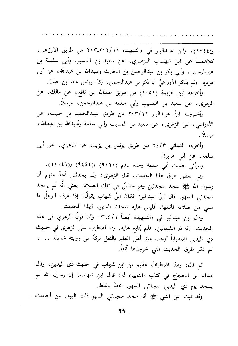 ثم قال: وهذا اضطرابٌ عظيم من ابن شهاب في حديث ذي اليدين، وقال مسلم بن الحجاج في كتاب "التمييز" له: قول ابن شهاب: إن رسول الله لم يسجد يوم ذي اليدين سجدتي السهو، خطأ وغلط.