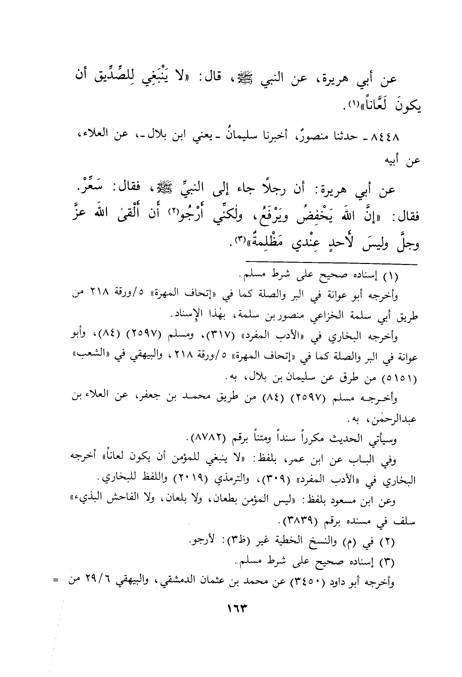 عَنْ أَبِي هُرَيْرَةَ، عَنِ النَّبِيِّ صَلَّى اللهُ عَلَيْهِ وَسَلَّمَ قَالَ: " لَا يَنْبَغِي لِلصَّدِيقِ أَنْ يَكُونَ لَعَّانًا " (١)