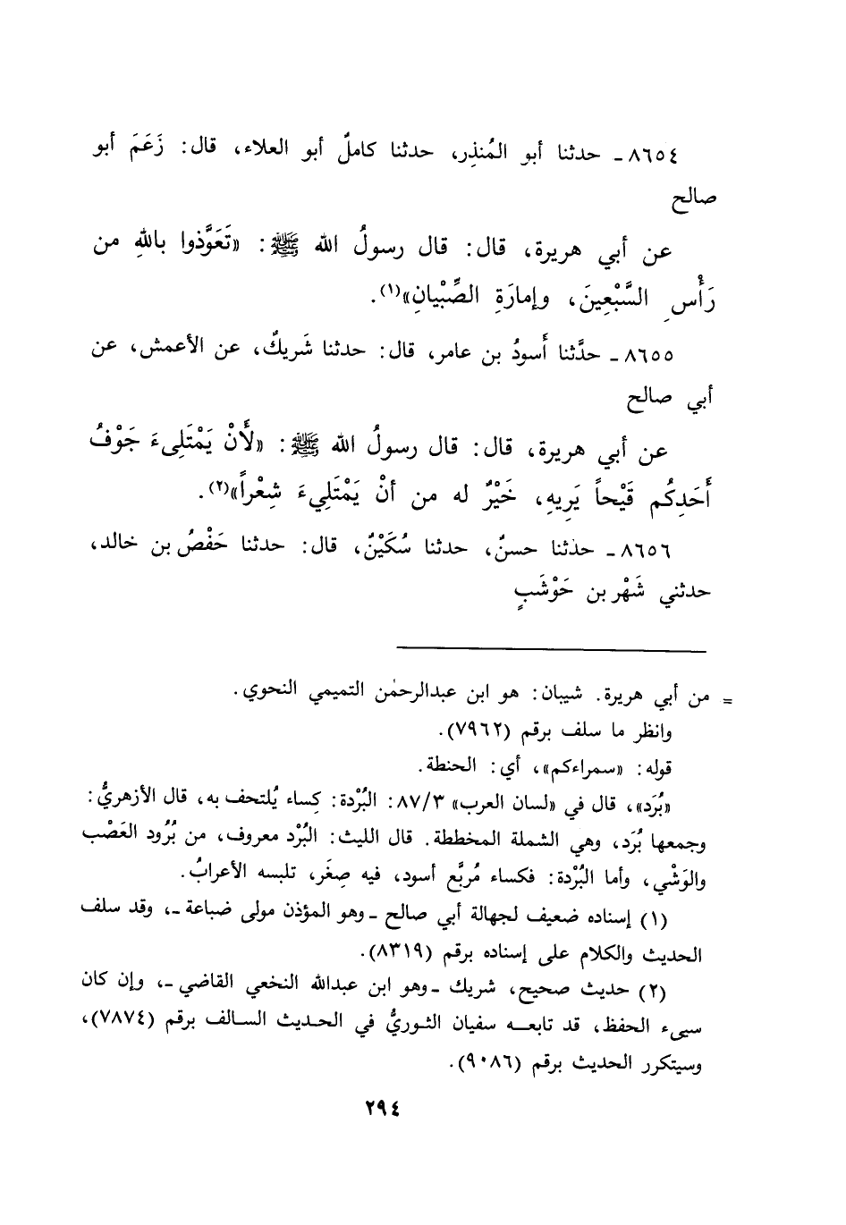 ٨٦٥٤ - حَدَّثَنَا أَبُو الْمُنْذِرِ، حَدَّثَنَا كَامِلٌ أَبُو الْعَلَاءِ، قَالَ: زَعَمَ أَبُو صَالِحٍ، عَنْ أَبِي هُرَيْرَةَ، قَالَ: قَالَ رَسُولُ اللهِ صَلَّى اللهُ عَلَيْهِ وَسَلَّمَ: " تَعَوَّذُوا بِاللهِ مِنْ رَأْسِ السَّبْعِينَ، وَإِمَارَةِ الصِّبْيَانِ " (١)