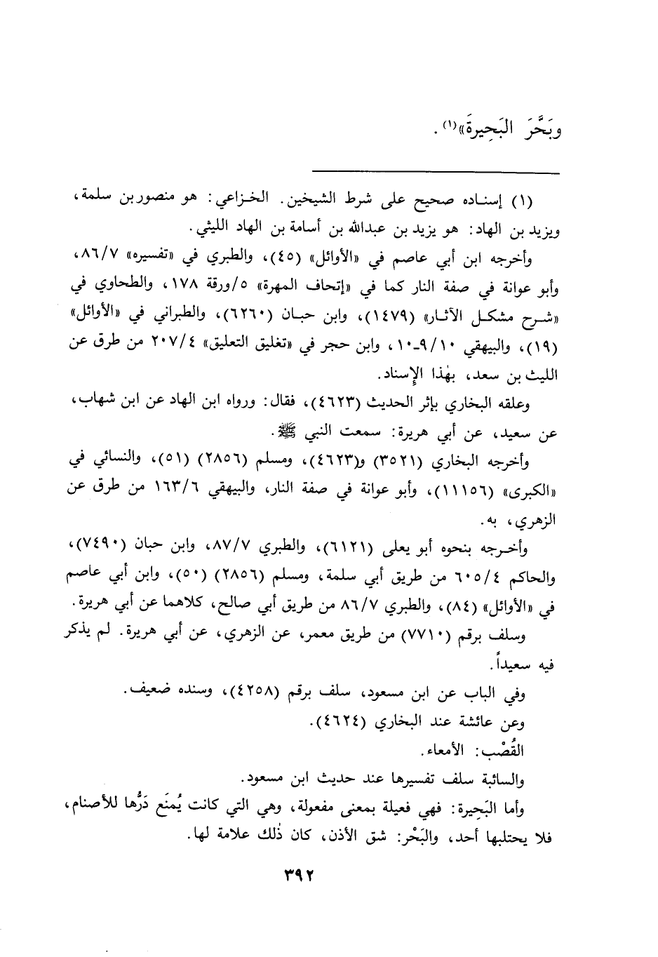 وَبَحَرَ الْبَحِيرَةَ " (١)