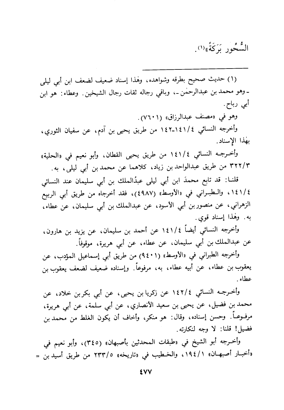 وأخرجه النسائي أيضاً ٤/١٤١ عن أحمد بن سليمان، عن يزيد بن هارون، عن عبد الملك بن أبي سليمان، عن عطاء، عن أبي هريرة، موقوفاً.