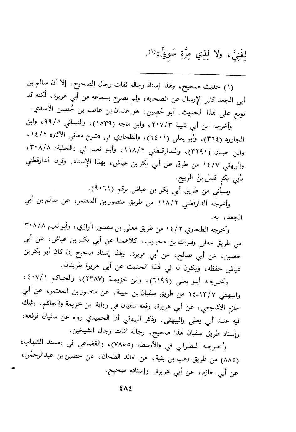 لِغَنِيٍّ، وَلَا لِذِي مِرَّةٍ سَوِيٍّ " (١)