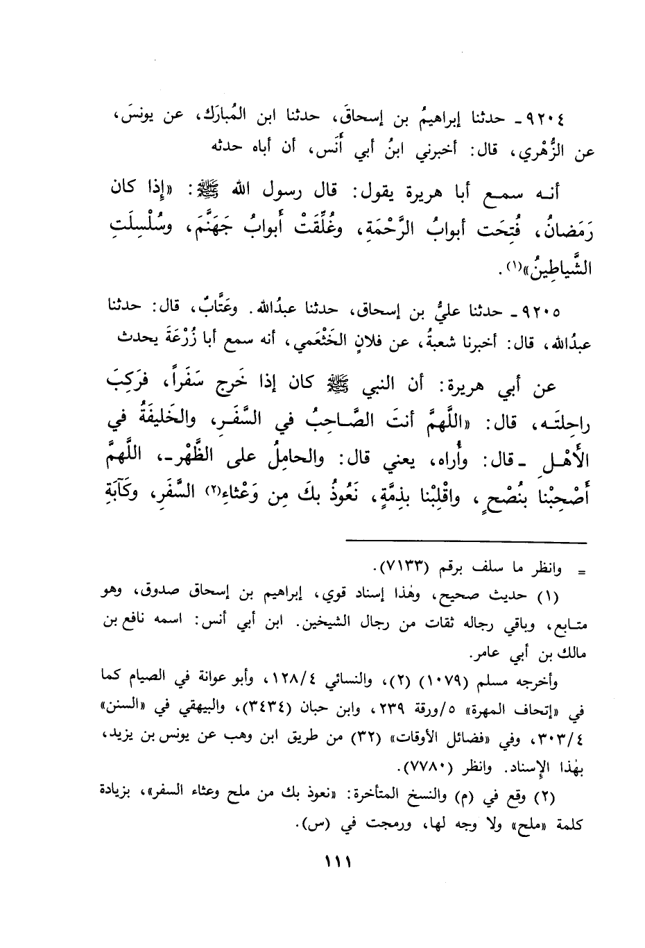 ٩٢٠٤ - حَدَّثَنَا إِبْرَاهِيمُ بْنُ إِسْحَاقَ، حَدَّثَنَا ابْنُ الْمُبَارَكِ، عَنْ يُونُسَ، عَنِ الزُّهْرِيِّ، قَالَ: أَخْبَرَنِي ابْنُ أَبِي أَنَسٍ، أَنَّ أَبَاهُ، حَدَّثَهُ أَنَّهُ، سَمِعَ أَبَا هُرَيْرَةَ، يَقُولُ: قَالَ رَسُولُ اللهِ صَلَّى اللهُ عَلَيْهِ وَسَلَّمَ: " إِذَا كَانَ رَمَضَانُ، فُتِّحَتْ أَبْوَابُ الرَّحْمَةِ، وَغُلِّقَتْ أَبْوَابُ جَهَنَّمَ، وَسُلْسِلَتِ الشَّيَاطِينُ " (١)