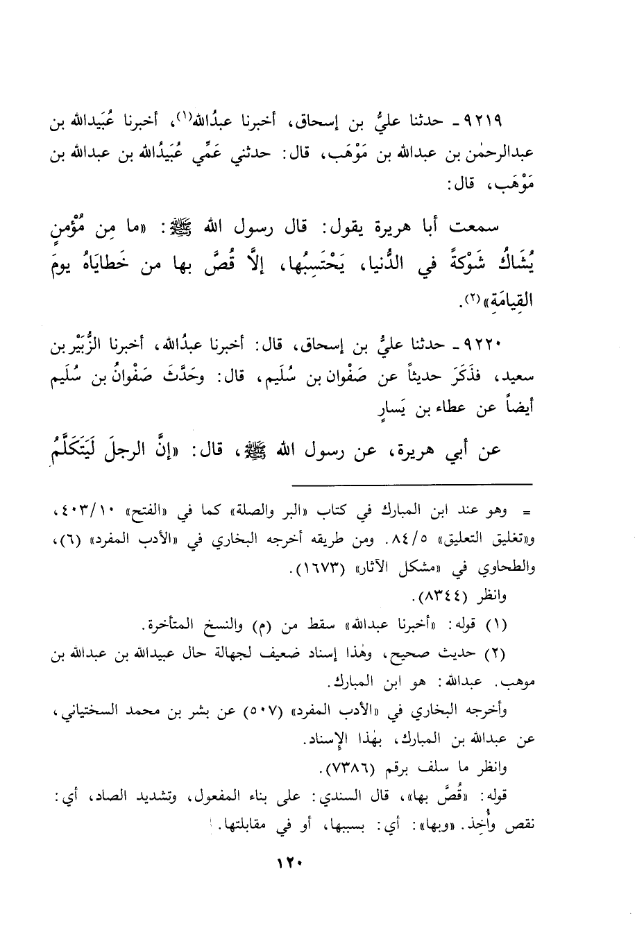 ٩٢٢٠ - حَدَّثَنَا عَلِيُّ بْنُ إِسْحَاقَ، قَالَ: أَخْبَرَنَا عَبْدُ اللهِ، أَخْبَرَنَا الزُّبَيْرُ بْنُ سَعِيدٍ - فَذَكَرَ حَدِيثًا عَنْ صَفْوَانَ بْنِ سُلَيْمٍ - قَالَ: وَحَدَّثَ صَفْوَانُ بْنُ سُلَيْمٍ أَيْضًا، عَنْ عَطَاءِ بْنِ يَسَارٍ، عَنْ أَبِي هُرَيْرَةَ، عَنْ رَسُولِ اللهِ صَلَّى اللهُ عَلَيْهِ وَسَلَّمَ قَالَ: " إِنَّ الرَّجُلَ لَيَتَكَلَّمُ