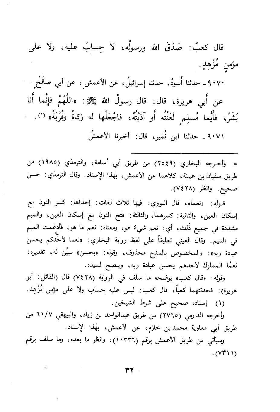 وقوله: "قال كعب" يوضحه ما سلف في الرواية (٧٤٢٨) قال (القائل: أبو هريرة) : فحدثتهما كعباً، قال كعب: ليس عليه حساب ولا على مومن مُزْهِد.
