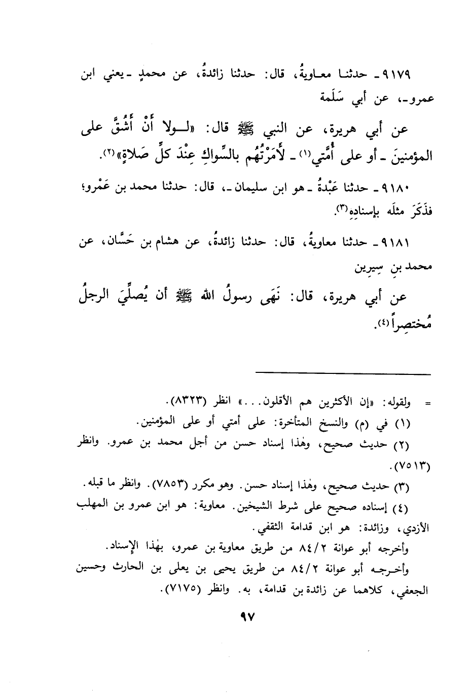 (٤) إسناده صحيح على شرط الشيخين. معاوية: هو ابن عمرو بن المهلب الآزدي، وزائدة: هو ابن قدامة الثقفي.