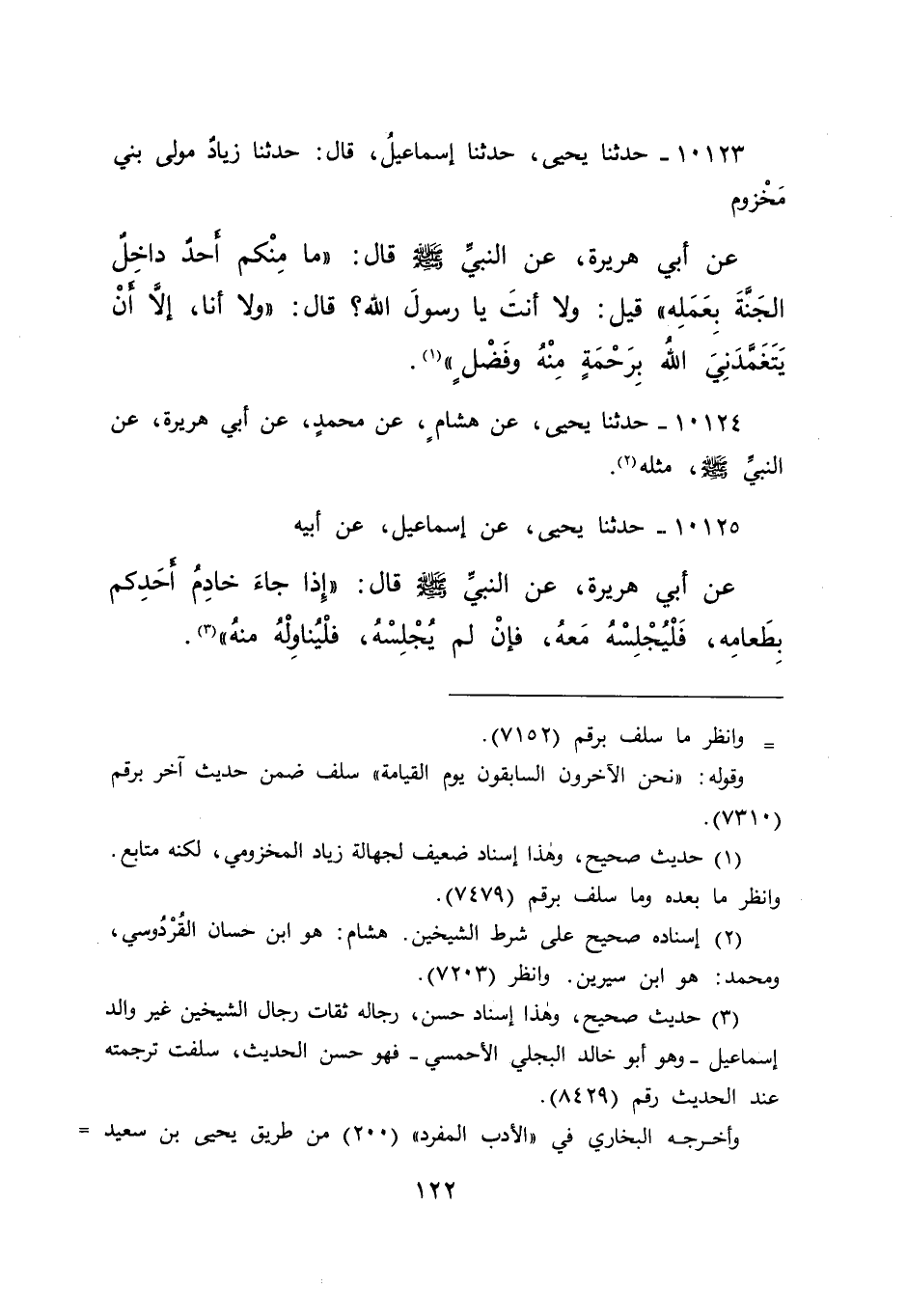 ١٠١٢٤ - حَدَّثَنَا يَحْيَى، عَنْ هِشَامٍ، عَنْ مُحَمَّدٍ، عَنِ أَبِي هُرَيْرَةَ، عَنِ النَّبِيِّ صَلَّى اللهُ عَلَيْهِ وَسَلَّمَ مِثْلَهُ (٢)
