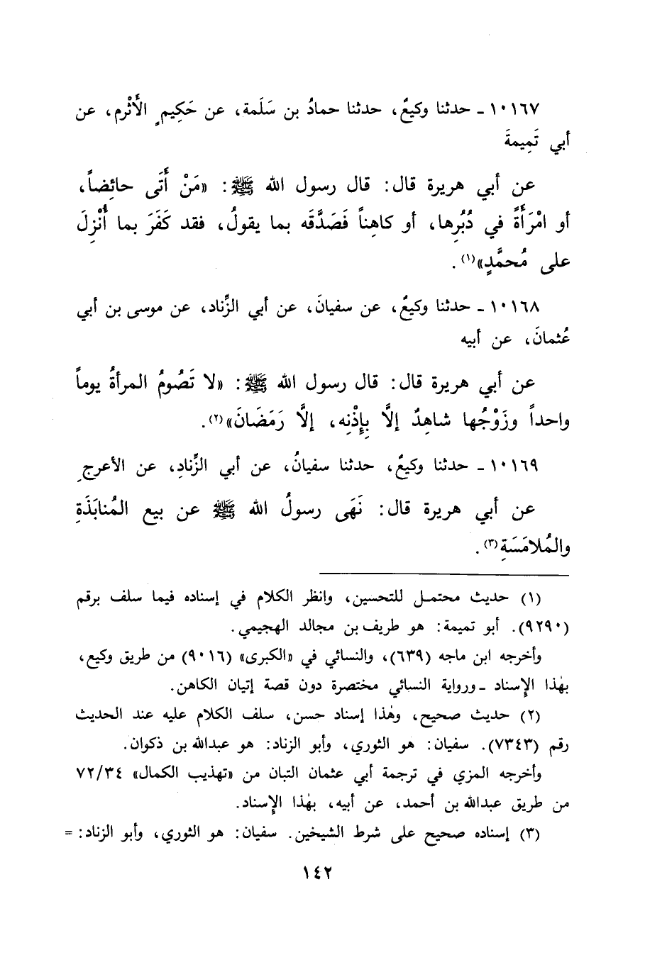 ١٠١٦٧ - حَدَّثَنَا وَكِيعٌ، حَدَّثَنَا حَمَّادُ بْنُ سَلَمَةَ، عَنْ حَكِيمٍ الْأَثْرَمِ، عَنِ أَبِي تَمِيمَةَ، عَنِ أَبِي هُرَيْرَةَ، قَالَ: قَالَ رَسُولُ اللهِ صَلَّى اللهُ عَلَيْهِ وَسَلَّمَ: " مَنْ أَتَى حَائِضًا، أَوْ امْرَأَةً فِي دُبُرِهَا، أَوْ كَاهِنًا فَصَدَّقَهُ بِمَا يَقُولُ، فَقَدْ كَفَرَ بِمَا أَنْزَلَ اللهُ عَلَى مُحَمَّدٍ (١) "