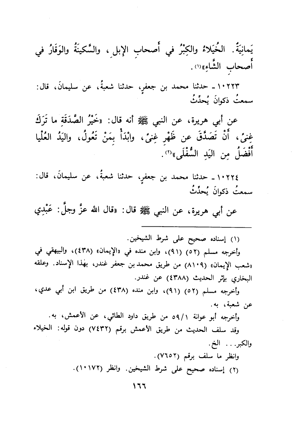 ١٠٢٢٣ - حَدَّثَنَا مُحَمَّدُ بْنُ جَعْفَرٍ، حَدَّثَنَا شُعْبَةُ، عَنْ سُلَيْمَانَ قَالَ: سَمِعْتُ ذَكْوَانَ، يُحَدِّثُ، عَنْ أَبِي هُرَيْرَةَ عَنِ النَّبِيِّ صَلَّى اللهُ عَلَيْهِ وَسَلَّمَ أَنَّهُ قَالَ: " خَيْرُ الصَّدَقَةِ مَا تَرَكَ غِنًى أَنْ تَتَصَدَّقَ عَنْ ظَهْرِ غِنًى، وَابْدَأْ بِمَنْ تَعُولُ، وَالْيَدُ الْعُلْيَا أَفْضَلُ مِنَ الْيَدِ السُّفْلَى " (٢)