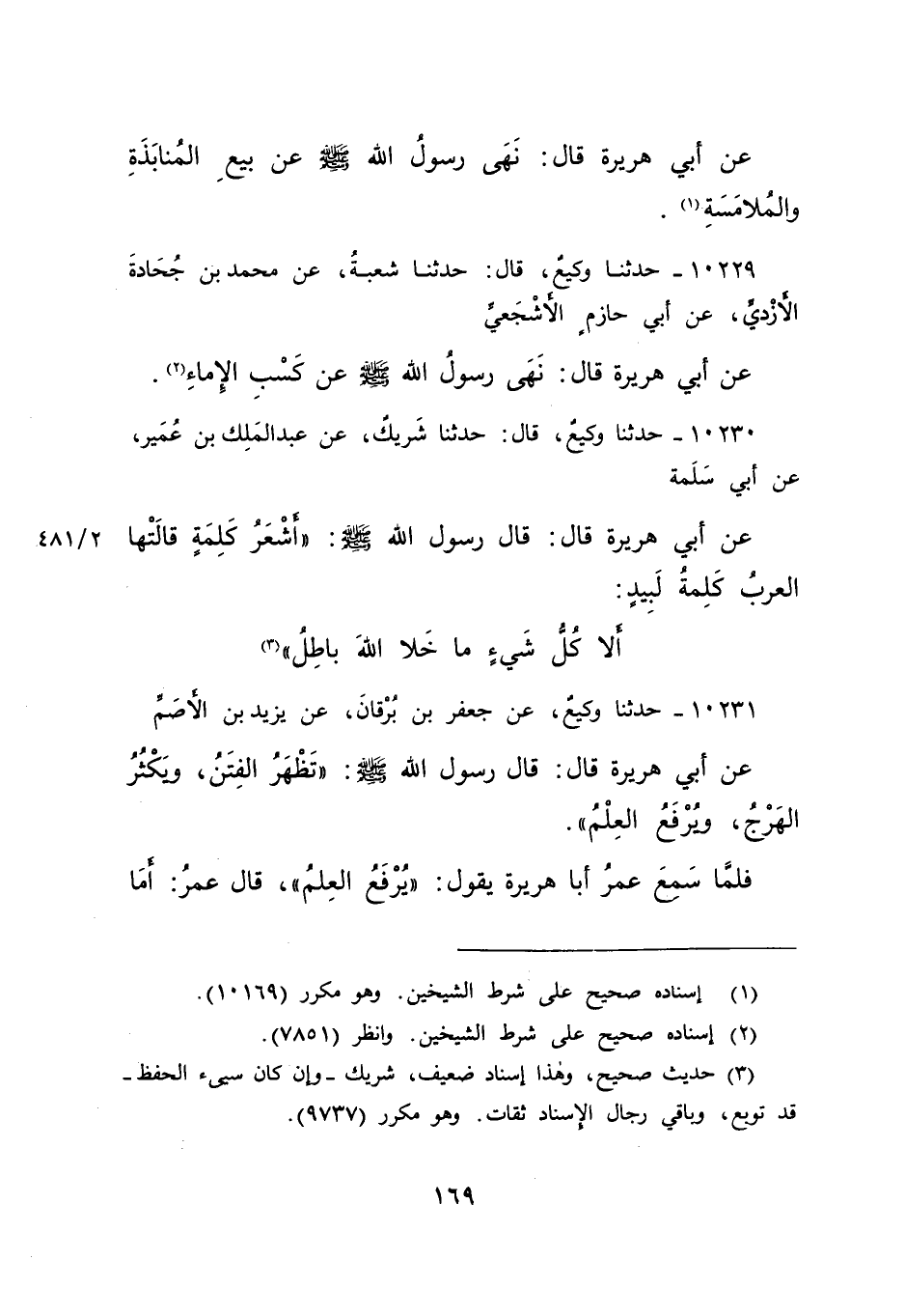 عَنِ أَبِي هُرَيْرَةَ، قَالَ: " نَهَى رَسُولُ اللهِ صَلَّى اللهُ عَلَيْهِ وَسَلَّمَ عَنْ بَيْعِ الْمُنَابَذَةِ، وَالْمُلَامَسَةِ " (١)