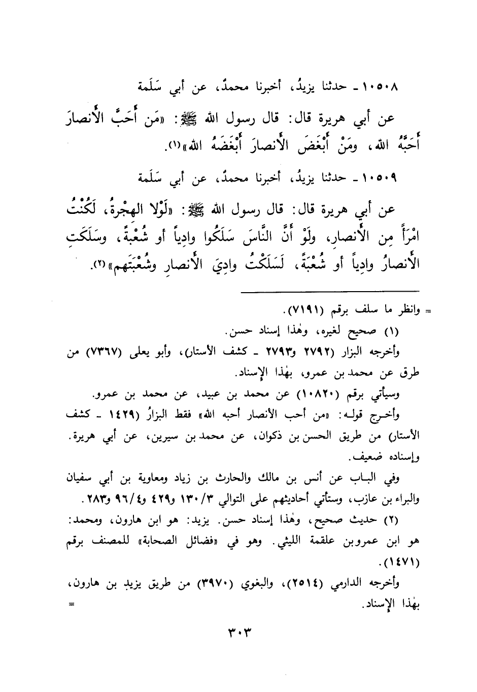 وأخرج قوله: "من أحب الأنصار أحبه الله" فقط البزارُ (١٤٢٩- كشف الآستار) من طريق الحسن بن ذكوان، عن محمد بن سيرين، عن أبي هريرة.