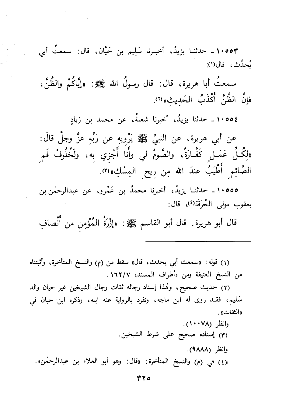 ١٠٥٥٣ - حَدَّثَنَا يَزِيدُ، أَخْبَرَنَا سَلِيمُ بْنُ حَيَّانَ، قَالَ: سَمِعْتُ أَبِي يُحَدِّثُ قَالَ (١) : سَمِعْتُ أَبَا هُرَيْرَةَ، قَالَ: قَالَ رَسُولُ اللهِ صَلَّى اللهُ عَلَيْهِ وَسَلَّمَ: " إِيَّاكُمْ وَالظَّنَّ، فَإِنَّ الظَّنَّ أَكْذَبُ الْحَدِيثِ " (٢)