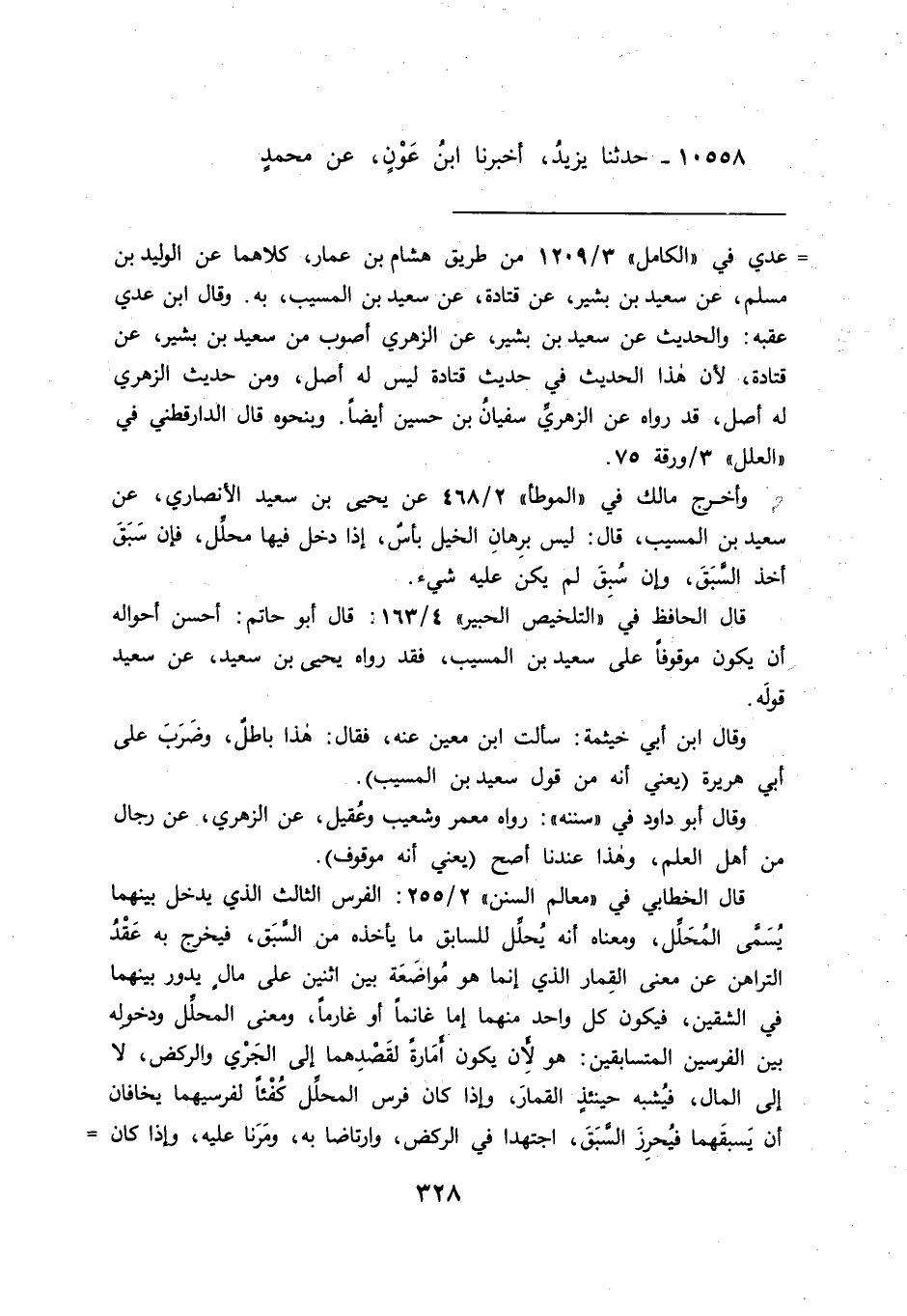 وأخرج مالك في "الموطأ" ٢/٤٦٨ عن يحيى بن سعيد الأنصاري، عن سعيد بن المسيب، قال: ليس برِهانِ الخيل بأس، إذا دخل فيها محلل، فإن سَبَقَ أخذ السبَقَ، وإن سُبِقَ لم يكن عليه شيء.