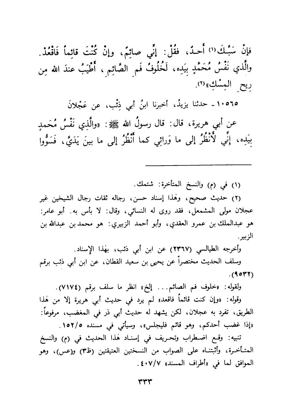 تنبيه: وقع اضطراب وتحريف في إسناد هذا الحديث في (م) والنسخ المتأخرة، وأثبتناه على الصواب من النسختين العتيقتين (ظ٣) و (عس) ، وهو الموافق لما في "أطراف المسند" ٧/٤٠٧.