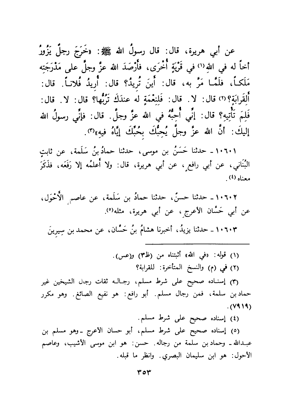 ١٠٦٠٢ - حَدَّثَنَا حَسَنٌ، حَدَّثَنَا حَمَّادُ بْنُ سَلَمَةَ، عَنْ عَاصِمٍ الْأَحْوَلِ، عَنْ أَبِي حَسَّانَ الْأَعْرَجِ، عَنْ أَبِي هُرَيْرَةَ، مِثْلَهُ (٥)