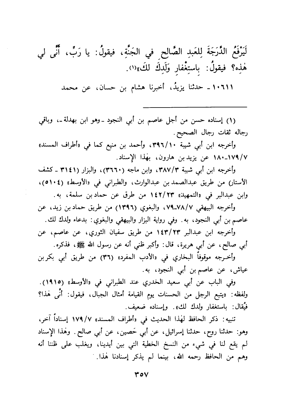 (١) إسناده حسن من أجل عاصم بن أبي النجود- وهو ابن بهدلة-، وباقى رجاله ثقات رجال الصحيح.