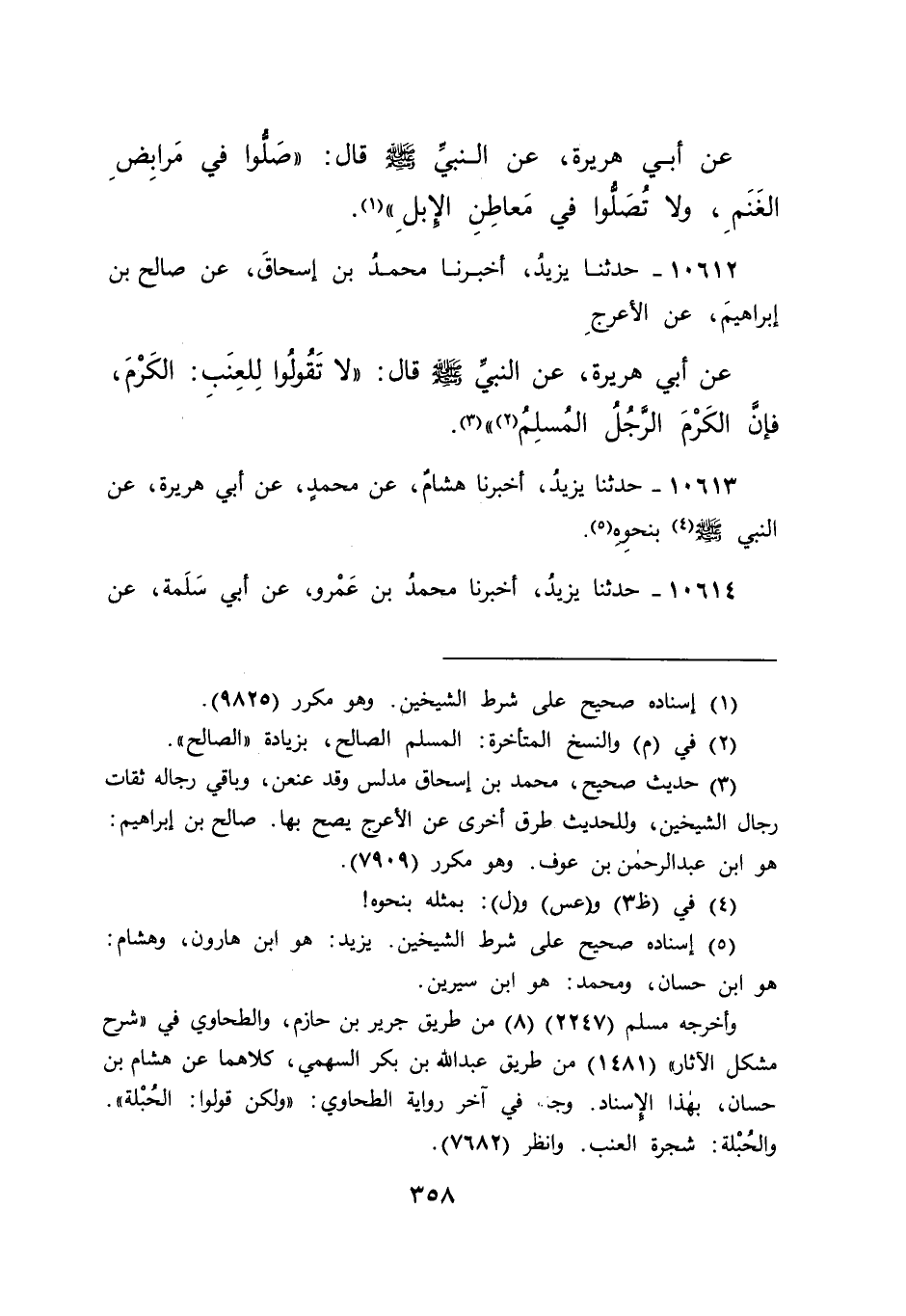 ١٠٦١٣ - حَدَّثَنَا يَزِيدُ، أَخْبَرَنَا هِشَامٌ، عَنْ مُحَمَّدٍ، عَنْ أَبِي هُرَيْرَةَ عَنِ النَّبِيِّ صَلَّى اللهُ عَلَيْهِ وَسَلَّمَ (٤) بِنَحْوِهِ (٥)