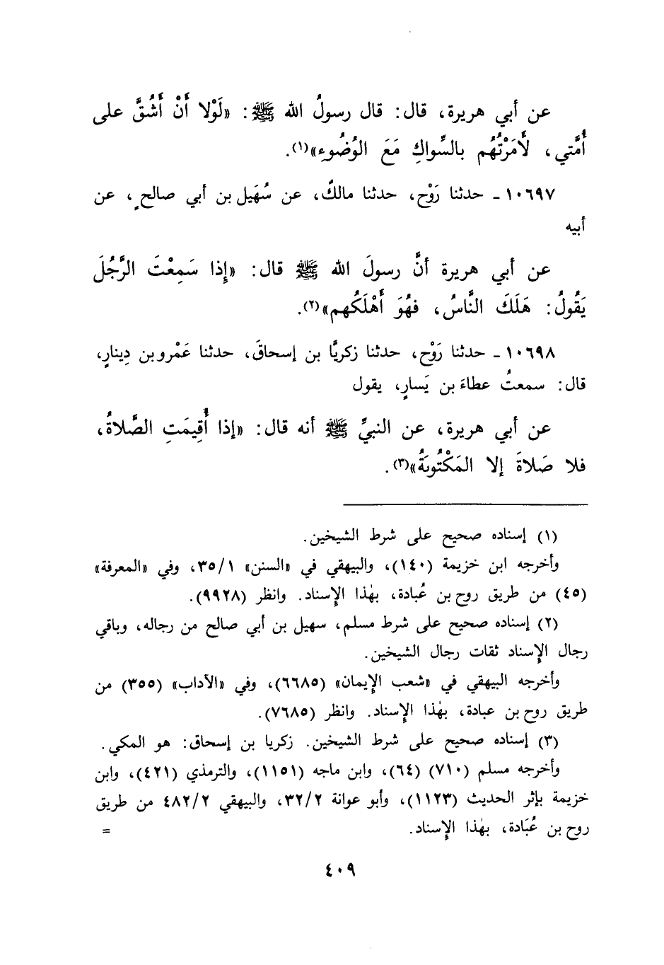 (٢) إسناده صحيح على شرط مسلم، سهيل بن أبي صالح من رجاله، وباقى رجال الإسناد ثقات رجال الشيخين.