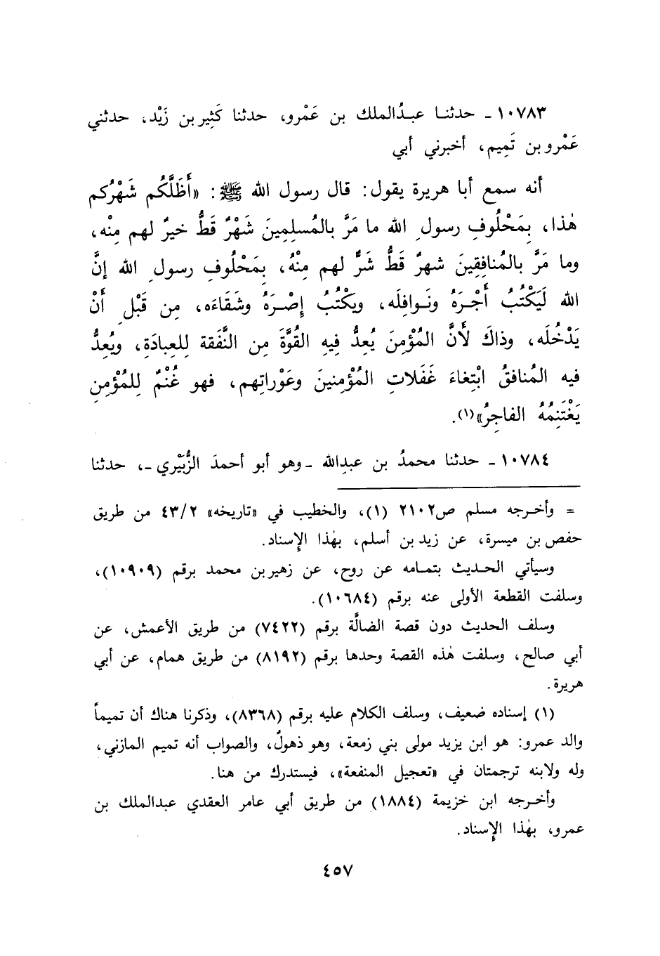 وسيأتي الحديث بتمامه عن روح، عن زهير بن محمد برقم (١٠٩٠٩) ، وسلفت القطعة الأولى عنه برقم (١٠٦٨٤) .