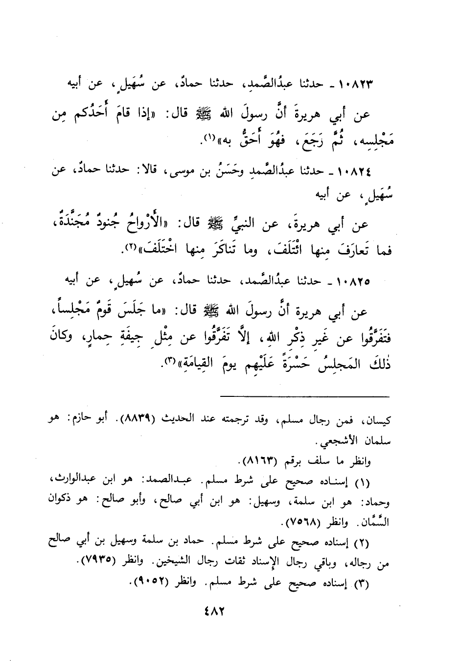 (١) إسناده صحيح على شرط مسلم. عبد الصمد: هو ابن عبد الوارث، وحماد: هو ابن سلمة، وسهيل: هو ابن أبى صالح، وأبو صالح: هو ذكوان السمَّان. وانظر (٧٥٦٨) .