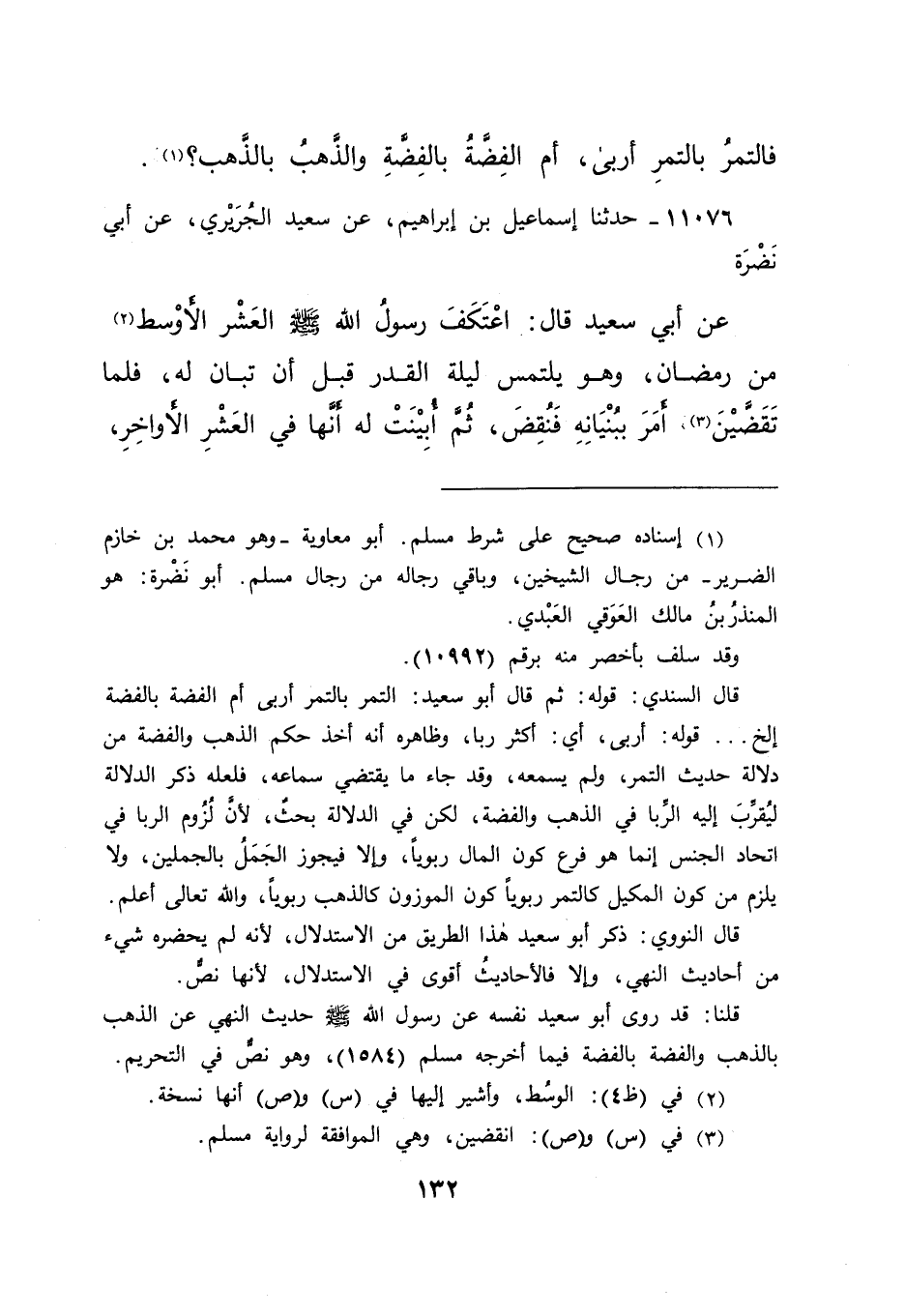 قال السندي: قوله: ثم قال أبو سعيد: التمر بالتمر أربى أم الفضة بالفضة إلخ ... قوله: أربى، أي: أكثر ربا، وظاهره أنه أخذ حكم الذهب والفضة من دلالة حديث التمر، ولم يسمعه، وقد جاء ما يقتضي سماعه، فلعله ذكر الدلالة ليُقرب إليه الربا في الذهب والفضة، لكن في الدلالة بحث، لأن لُزُوم الربا في اتحاد الجنس إنما هو فرع كون المال ربوياً، وإلا فيجوز الجملُ بالجملين، ولا