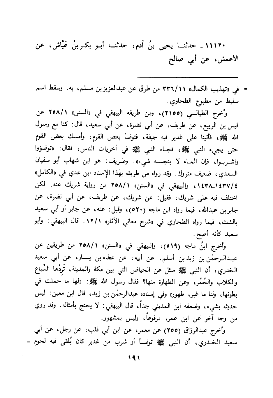 ١١١٢٠ - حَدَّثَنَا يَحْيَى بْنُ آدَمَ، حَدَّثَنَا أَبُو بَكْرِ بْنُ عَيَّاشٍ، عَنِ الْأَعْمَشِ، عَنْ أَبِي صَالِحٍ،