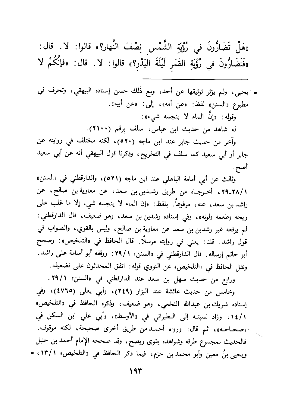 فالحديث بمجموع طرقه وشواهده يقوى ويصح، وقد صححه الإمام أحمد بن حنبل ويحيى بنُ معين وأبو محمد بن حزم، فيما ذكر الحافظ في "التلخيص" ١/١٣، =