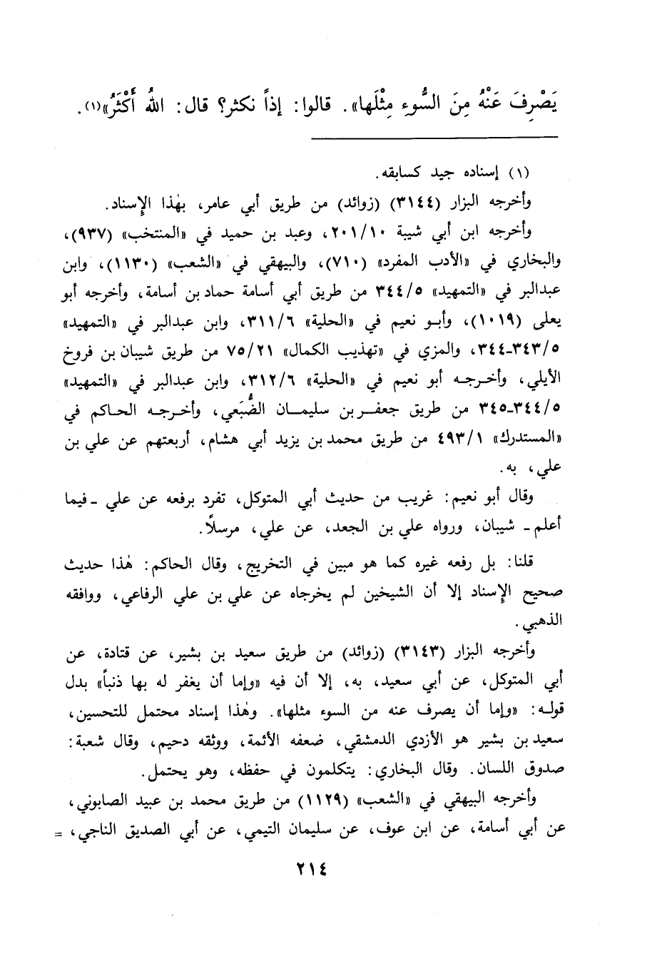 وأخرجه البيهقي في "الشعب" (١١٢٩) من طريق محمد بن عبيد الصابوني، عن أبي أسامة، عن ابن عوف، عن سليمان التيمي، عن أبي الصديق الناجي، =