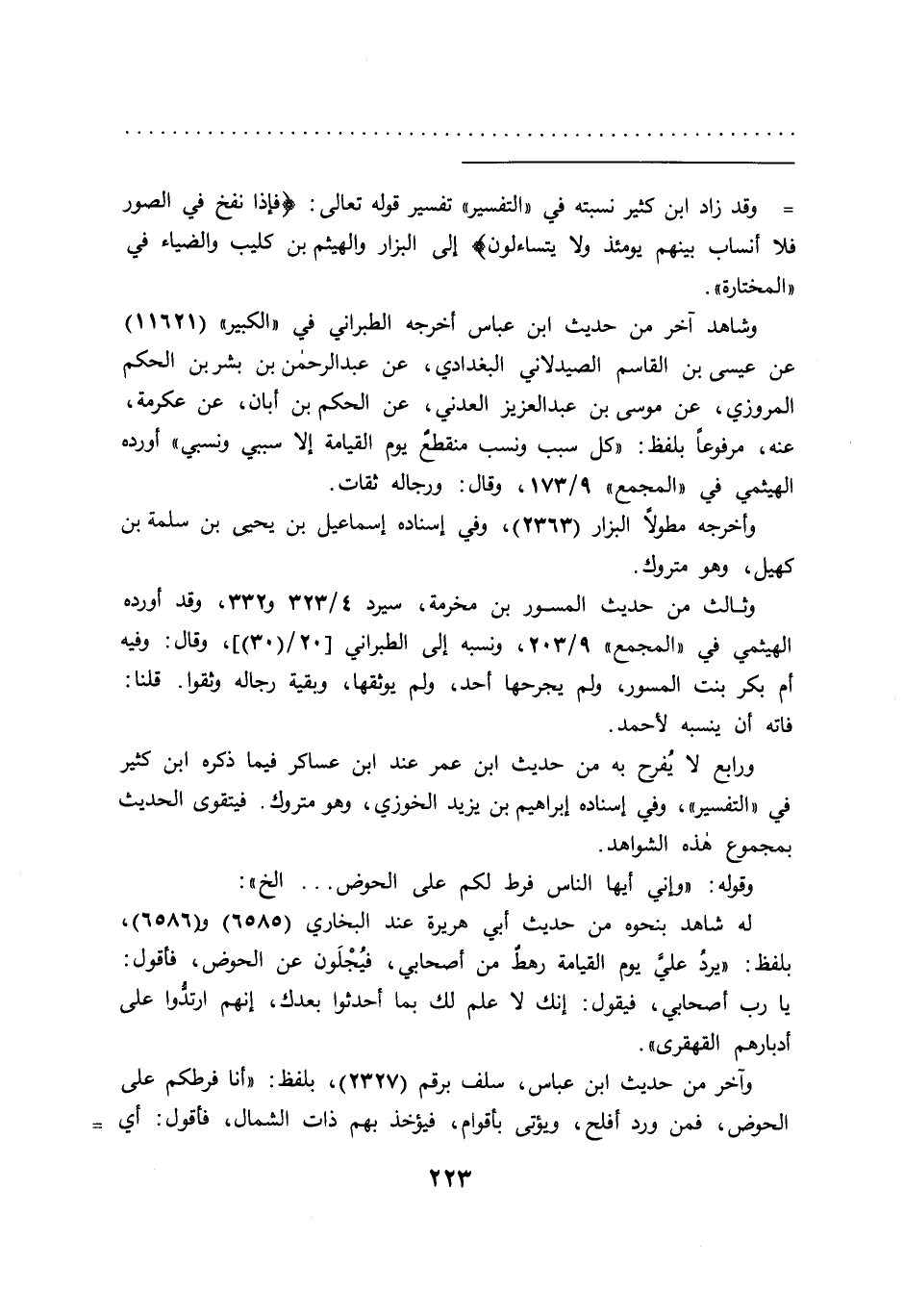 = وقد زاد ابن كثير نسبته في "التفسير" تفسير قوله تعالى: (فإذا نفخ في الصور فلا أنساب بينهم يومئذ ولا يتساءلون) إلى البزار والهيثم بن كليب والضياء في "المختارة".