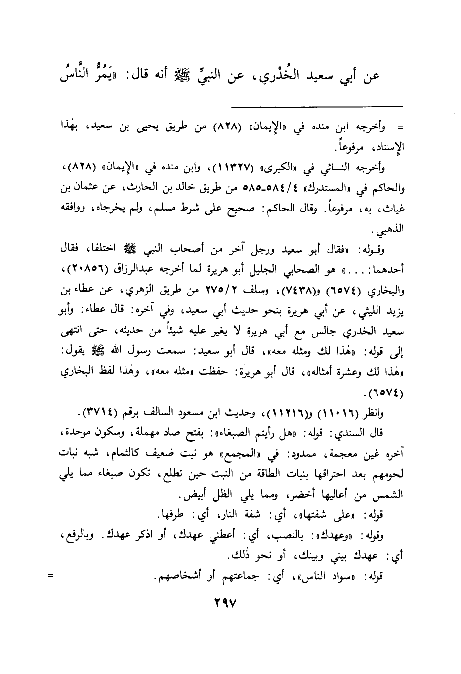 عَنْ أَبِي سَعِيدٍ الْخُدْرِيِّ، عَنِ النَّبِيِّ صَلَّى اللهُ عَلَيْهِ وَسَلَّمَ أَنَّهُ قَالَ: " يَمُرُّ النَّاسُ