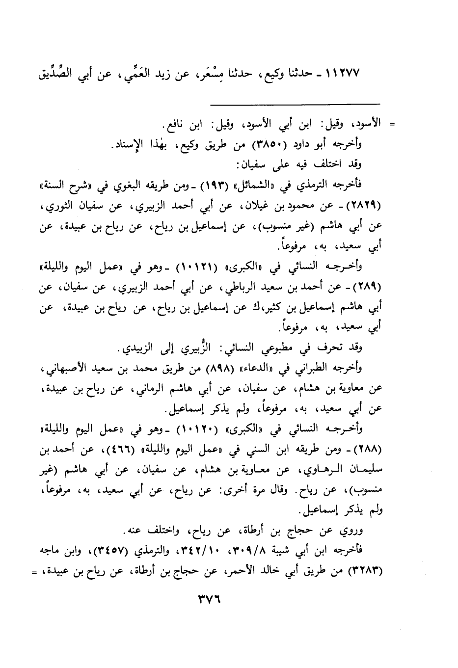 ١١٢٧٧ - حَدَّثَنَا وَكِيعٌ، حَدَّثَنَا مِسْعَرٌ، عَنْ زَيْدٍ الْعَمِّيِّ، عَنْ أَبِي الصِّدِّيقِ،