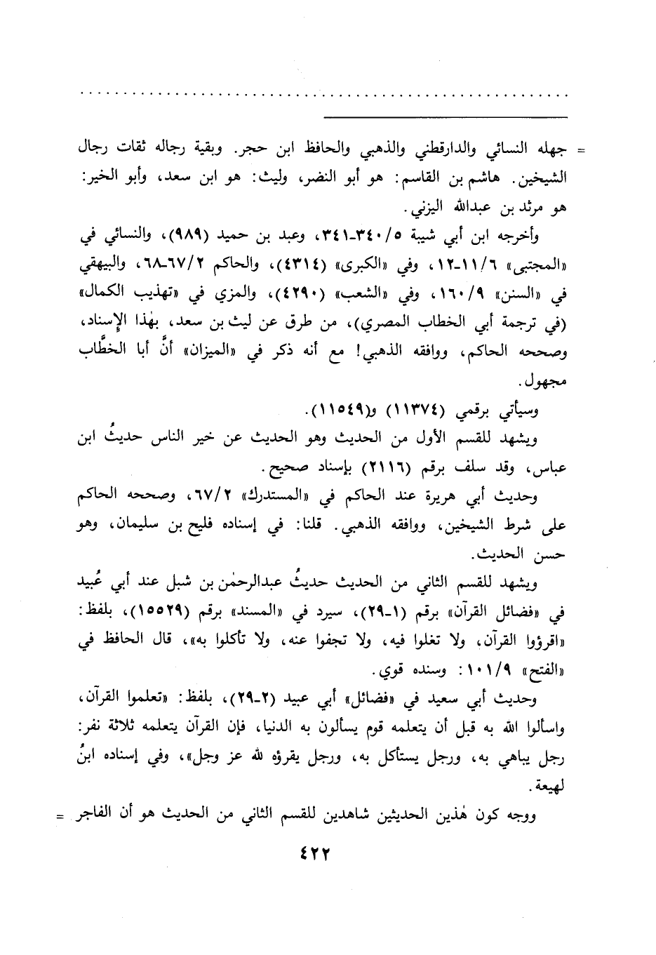 ووجه كون هذين الحديثين شاهدين للقسم الثاني من الحديث هو أن الفاجر =