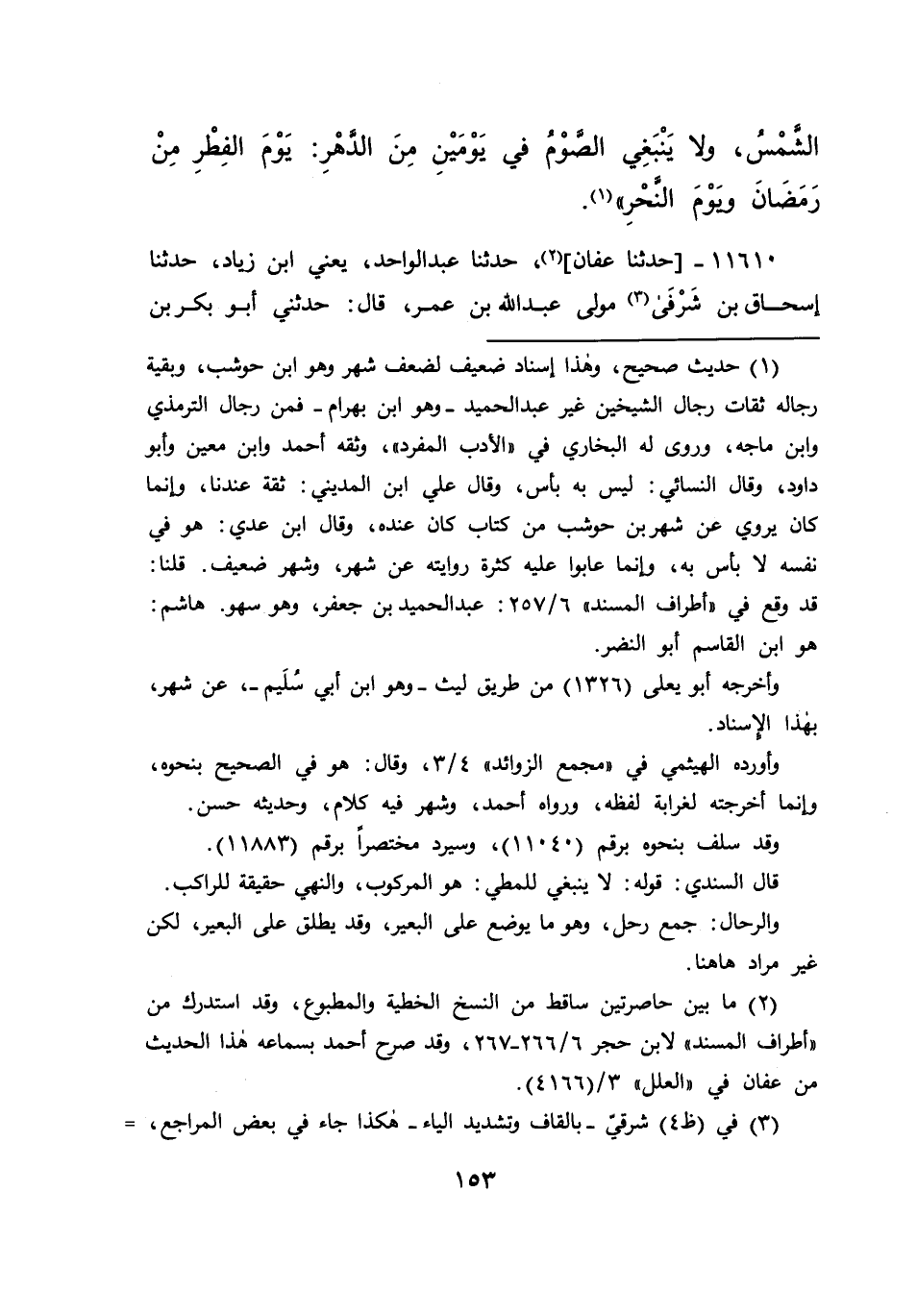 الشَّمْسُ وَلَا يَنْبَغِي الصَّوْمُ فِي يَوْمَيْنِ مِنَ الدَّهْرِ: يَوْمِ الْفِطْرِ مِنْ رَمَضَانَ، وَيَوْمِ النَّحْرِ " (١)