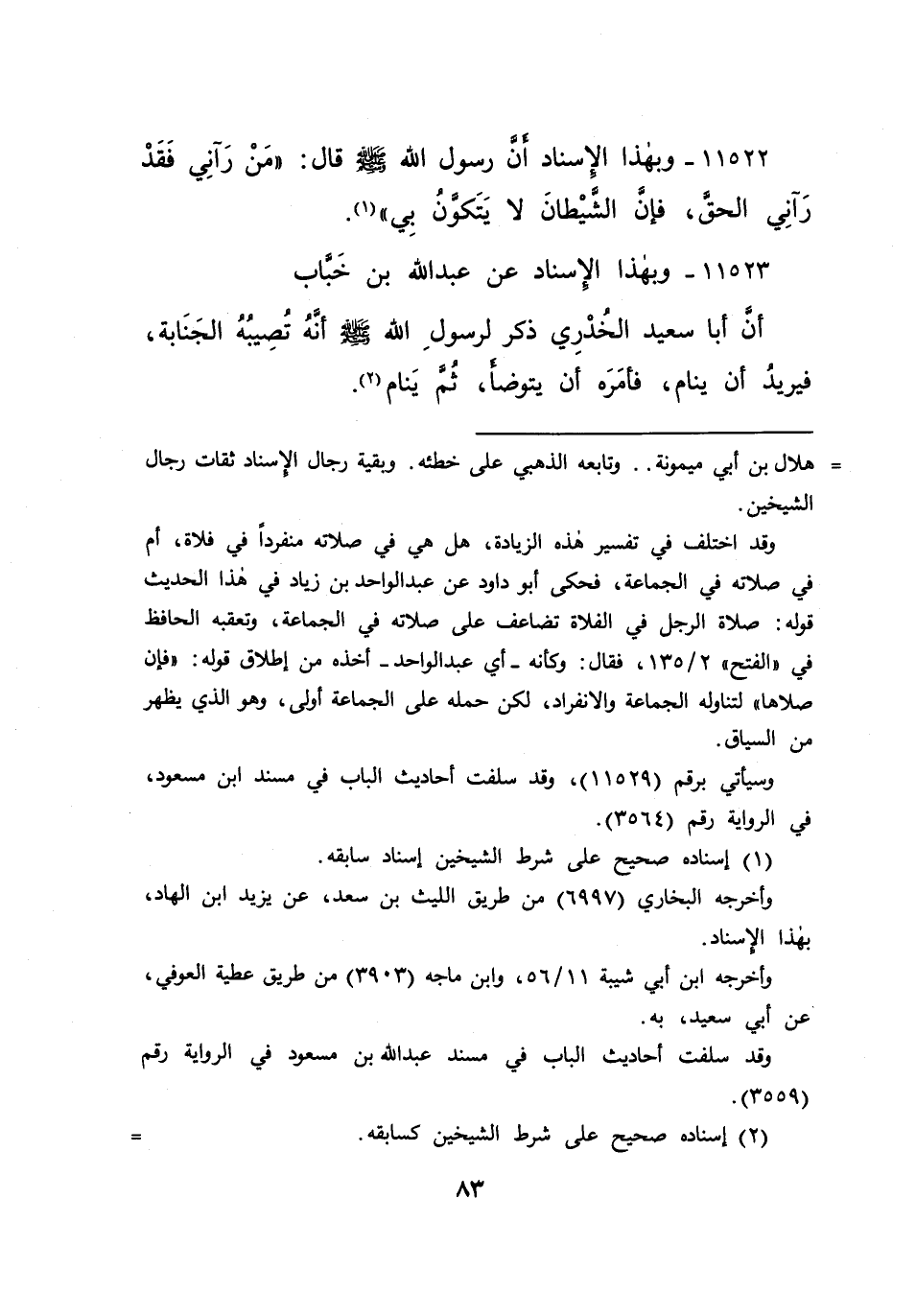 ١١٥٢٢ - وَبِهَذَا الْإِسْنَادِ أَنَّ رَسُولَ اللهِ صَلَّى اللهُ عَلَيْهِ وَسَلَّمَ قَالَ: " مَنْ رَآنِي فَقَدْ رَآنِي الْحَقَّ، فَإِنَّ الشَّيْطَانَ لَا يَتَكَوَّنُ بِي " (١)