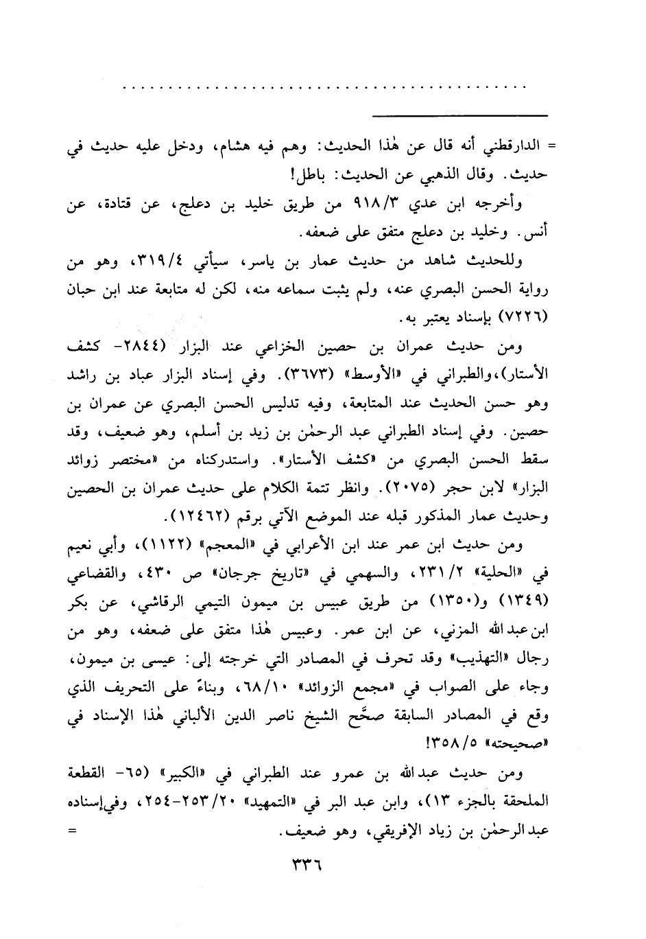 ومن حديث عمران بن حصين الخزاعي عند البزار (٢٨٤٤- كشف الأستار) ، والطبراني في "الأوسط" (٣٦٧٣) . وفي إسناد البزار عباد بن راشد وهو حسن الحديث عند المتابعة، وفيه تدليس الحسن البصري عن عمران بن حصين. وفي إسناد الطبراني عبد الرحمن بن زيد بن أسلم، وهو ضعيف، وقد سقط الحسن البصري من (كشف الأستار) . واستدركناه من "مختصر زوائد البزار" لابن حجر (٢٠٧٥) . وانظر تتمة الكلام على حديث عمران بن الحصين وحديث عمار المذكور قبله عند الموضع الآتي برقم (١٢٤٦٢) .