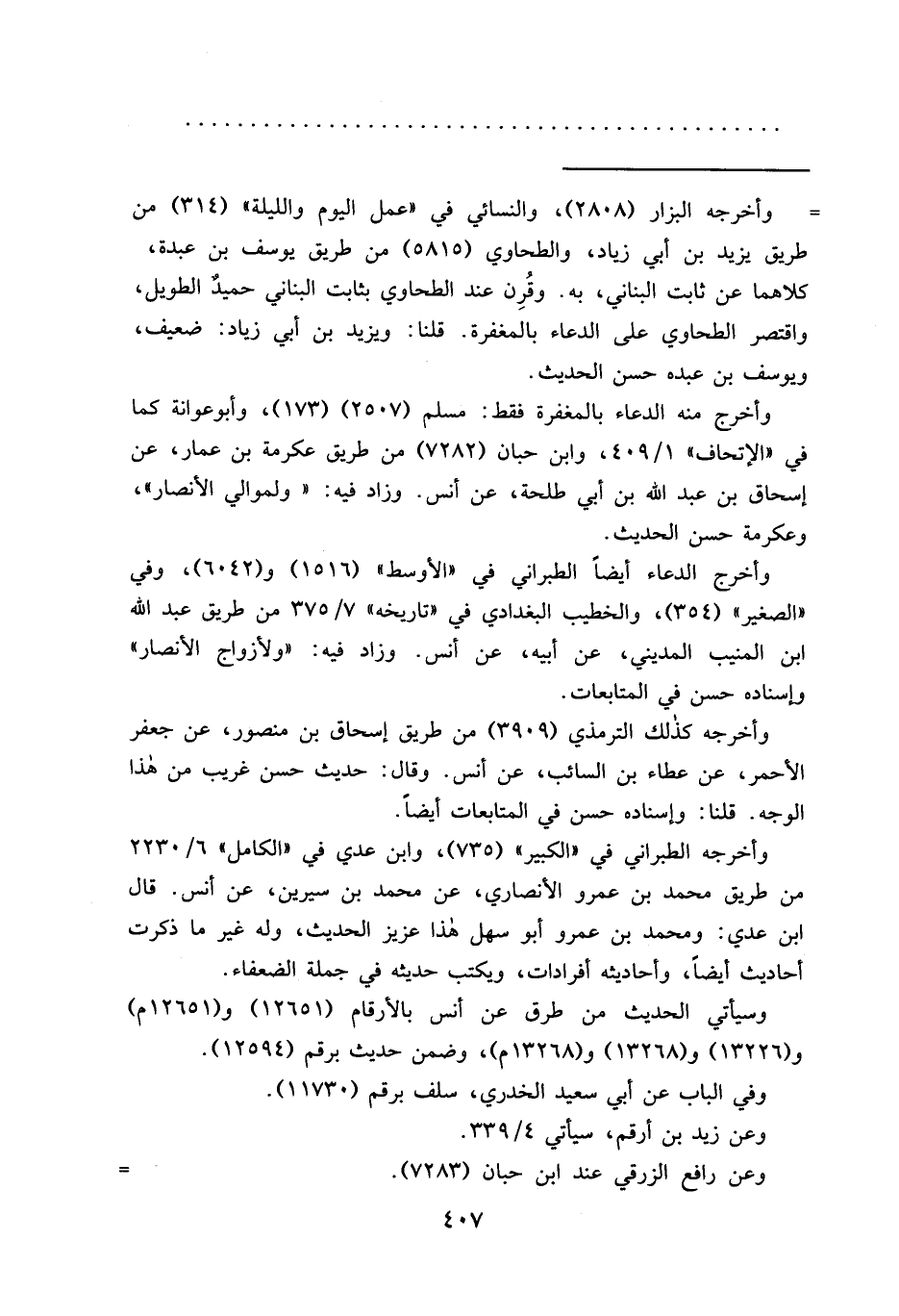 = وأخرجه البزار (٢٨٠٨) ، والنسائي في "عمل اليوم والليلة" (٣١٤) من طريق يزيد بن أبي زياد، والطحاوي (٥٨١٥) من طريق يوسف بن عبدة، كلاهما عن ثابت البناني، به. وقُرن عند الطحاوي بثابت البناني حميد الطويل، واقتصر الطحاوي على الدعاء بالمغفرة. قلنا: ويزيد بن أبي زياد: ضعيف، ويوسف بن عبده حسن الحديث.