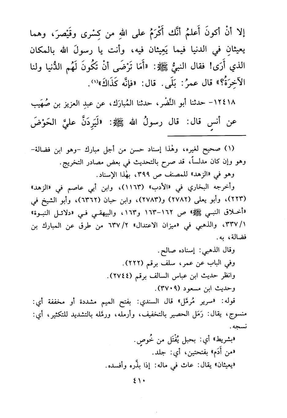 ١٢٤١٨ - حَدَّثَنَا أَبُو النَّضْرِ، حَدَّثَنَا الْمُبَارَكُ، عَنْ عَبْدِ الْعَزِيزِ بْنِ صُهَيْبٍ، عَنْ أَنَسٍ قَالَ: قَالَ رَسُولُ اللهِ صَلَّى اللهُ عَلَيْهِ وَسَلَّمَ: " لَيَرِدَنَّ عَلَيَّ الْحَوْضَ