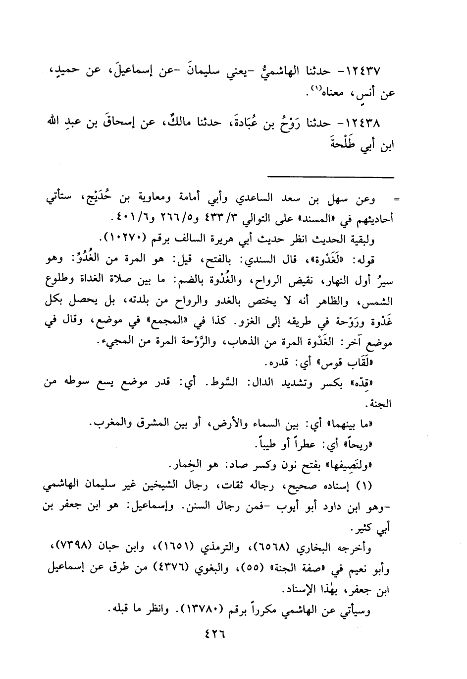 ١٢٤٣٧ - حَدَّثَنَا الْهَاشِمِيُّ يَعْنِي سُلَيْمَانَ، عَنْ إِسْمَاعِيلَ، عَنْ حُمَيْدٍ، عَنْ أَنَسٍ مَعْنَاهُ (١)