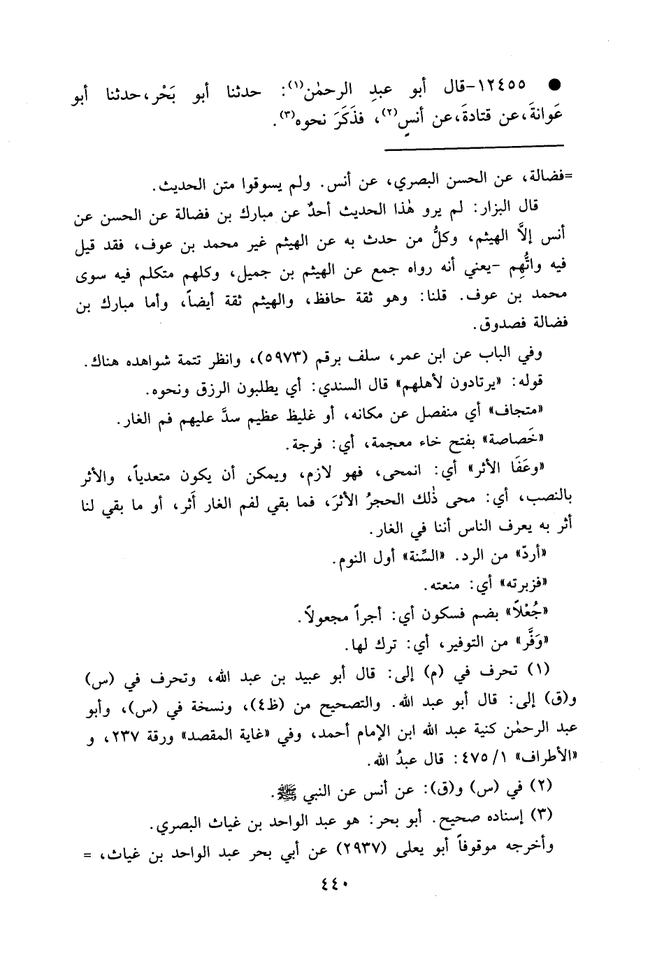 • ١٢٤٥٥ - قَالَ أَبُو عَبْدِ الرَّحْمَنِ (١) : حَدَّثَنَا أَبُو بَحْرٍ، حَدَّثَنَا أَبُو عَوَانَةَ، عَنْ قَتَادَةَ، عَنْ أَنَسٍ (٢) ، فَذَكَرَ نَحْوَهُ، (٣)