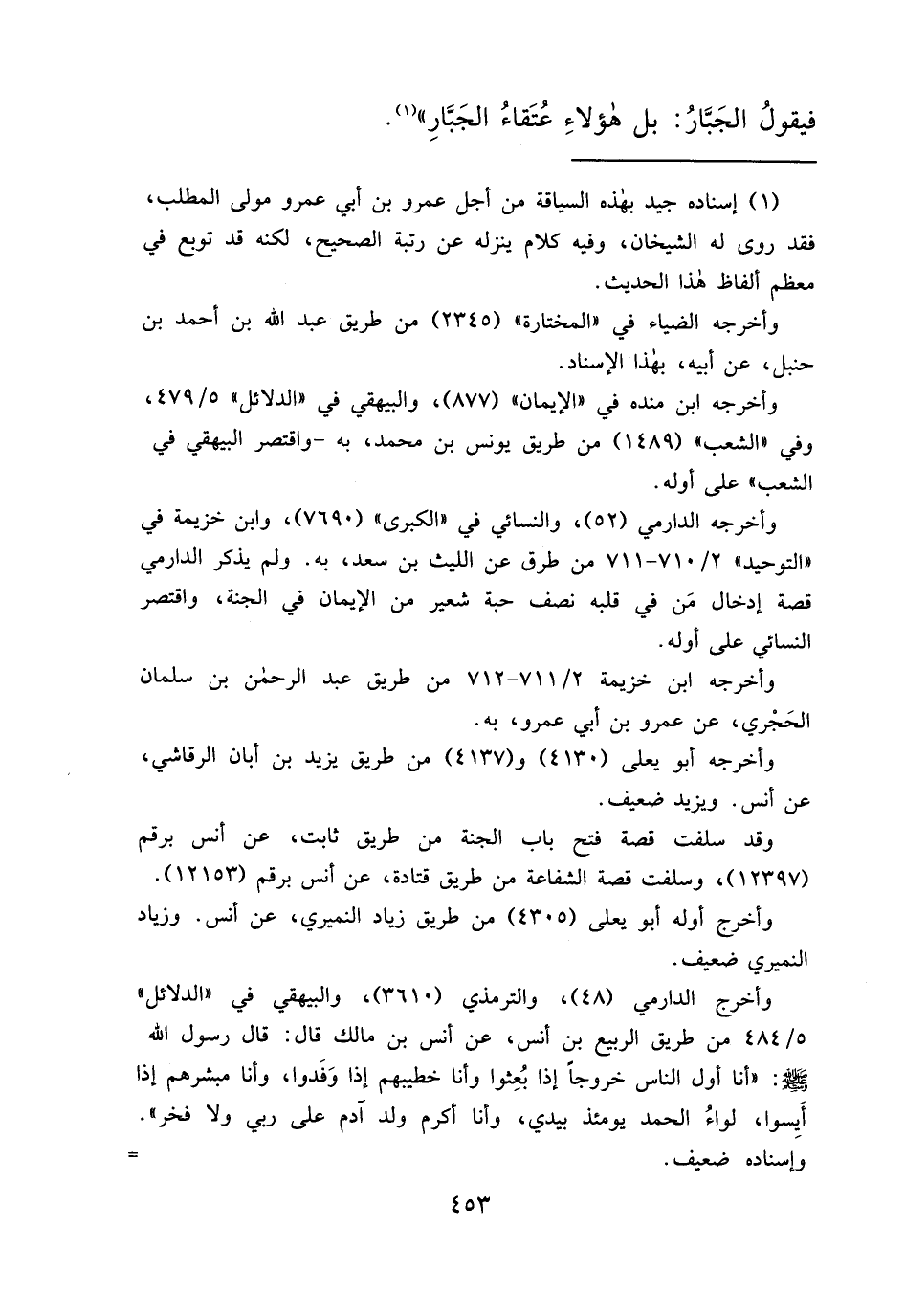 فَيَقُولُ الْجَبَّارُ: بَلْ هَؤُلَاءِ عُتَقَاءُ الْجَبَّارِ " (١)