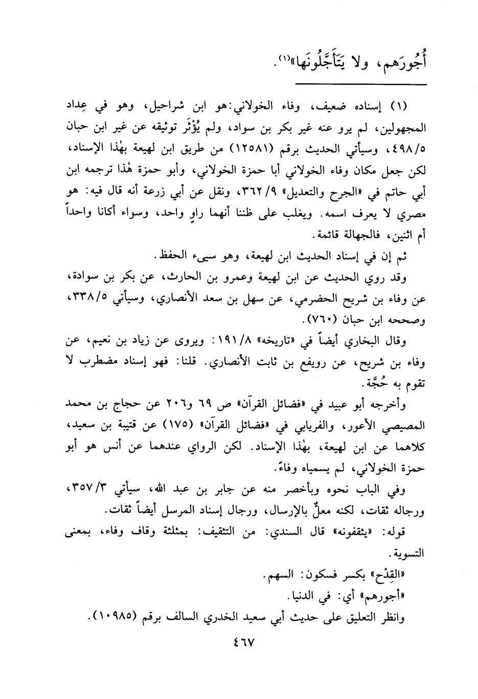 وقد روي الحديث عن ابن لهيعة وعمرو بن الحارث، عن بكر بن سوادة، عن وفاء بن شريح الحضرمي، عن سهل بن سعد الأنصاري، وسيأتي ٥/٣٣٨، وصححه ابن حبان (٧٦٠) .